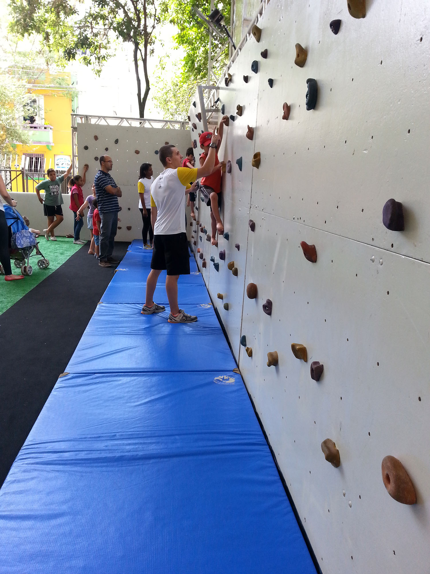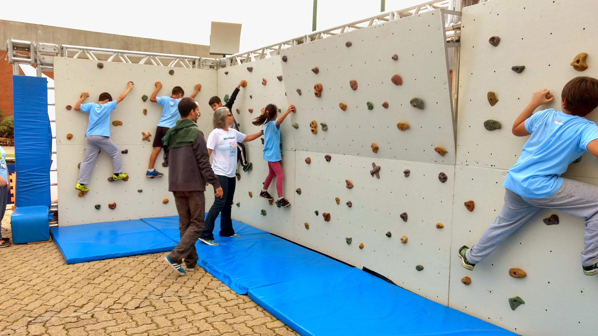 A segurança é sempre prioridade! O design da parede permite que os participantes se movam de forma segura e confortável, enquanto o técnico responsável pode ajustar o nível de dificuldade do percurso de acordo com o perfil de cada evento. Isso é feito ajustando o tamanho, o distanciamento e até mesmo as cores das agarras, que podem ser usadas para criar trajetos com diferentes níveis de desafio.