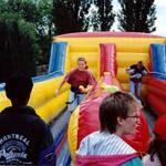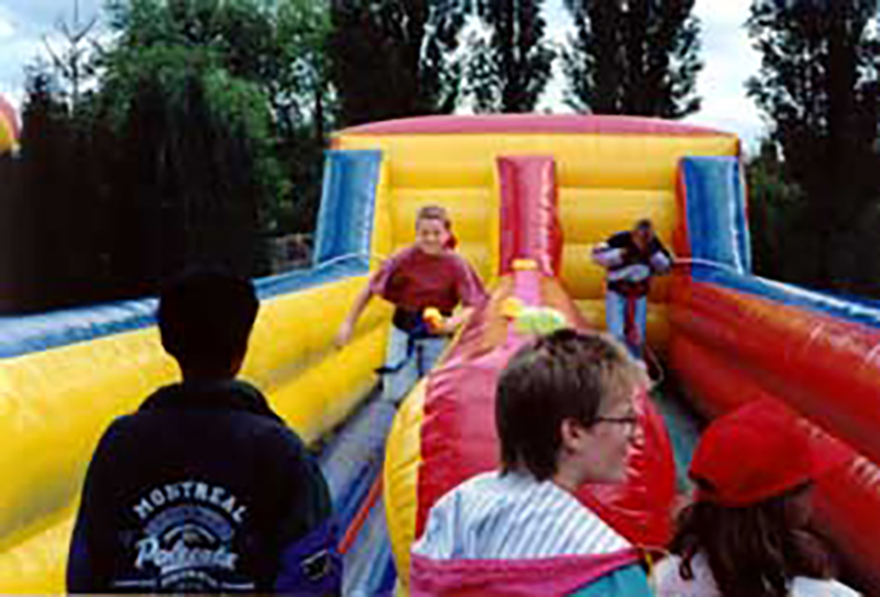 É uma competição também conhecida como corrida elástica. Utiliza uma pista dupla inflável, onde dois participantes correm contra a resistência de um cabo elástico preso ao corpo. O objetivo é fazer com que os participantes consigam alcançar uma meta estipulada pelo monitor, desafiando seu próprio limite. Ideal para distribuição de brindes.