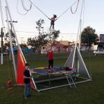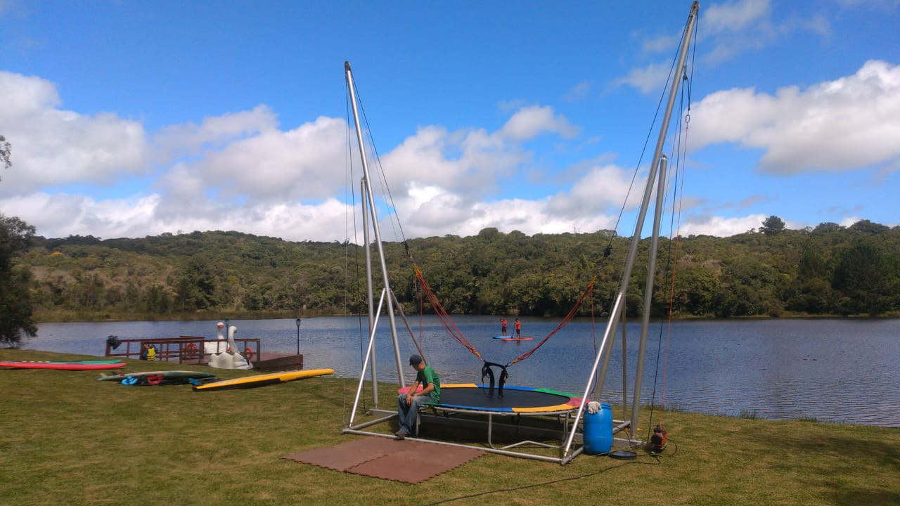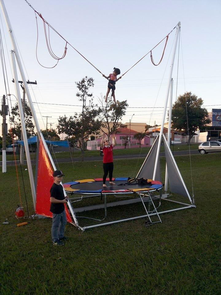 O Bungeetrampolim é um equipamento inovador que combina a diversão de uma cama elástica com a emoção do bungee jump. Ele é composto por uma estrutura de alumínio robusta, sustentando dois mastros de 6,50 metros de altura. Através de um sistema de cordas elásticas, tensionadas por um motor monofásico, ligadas aos mastros e à cintura do participante, ele proporciona saltos de grande amplitude. A experiência de voar a alturas impressionantes permite aos participantes se acostumarem com a sensação de elevação e realizar acrobacias incríveis, como saltos ornamentais. Além de ser uma excelente forma de condicionamento físico, o Bungeetrampolim oferece total segurança e garante diversão tanto para quem se aventura quanto para quem assiste às performances.