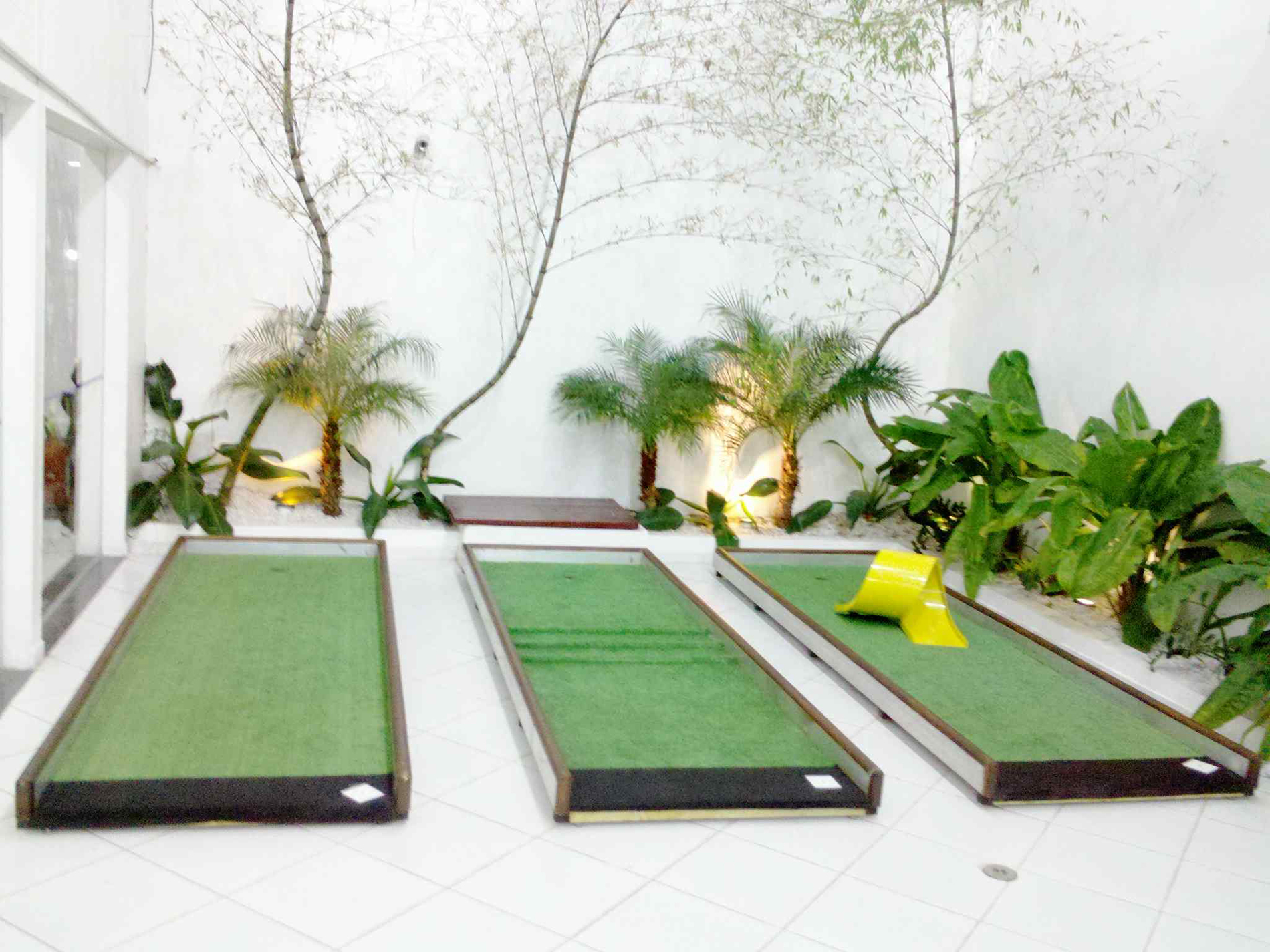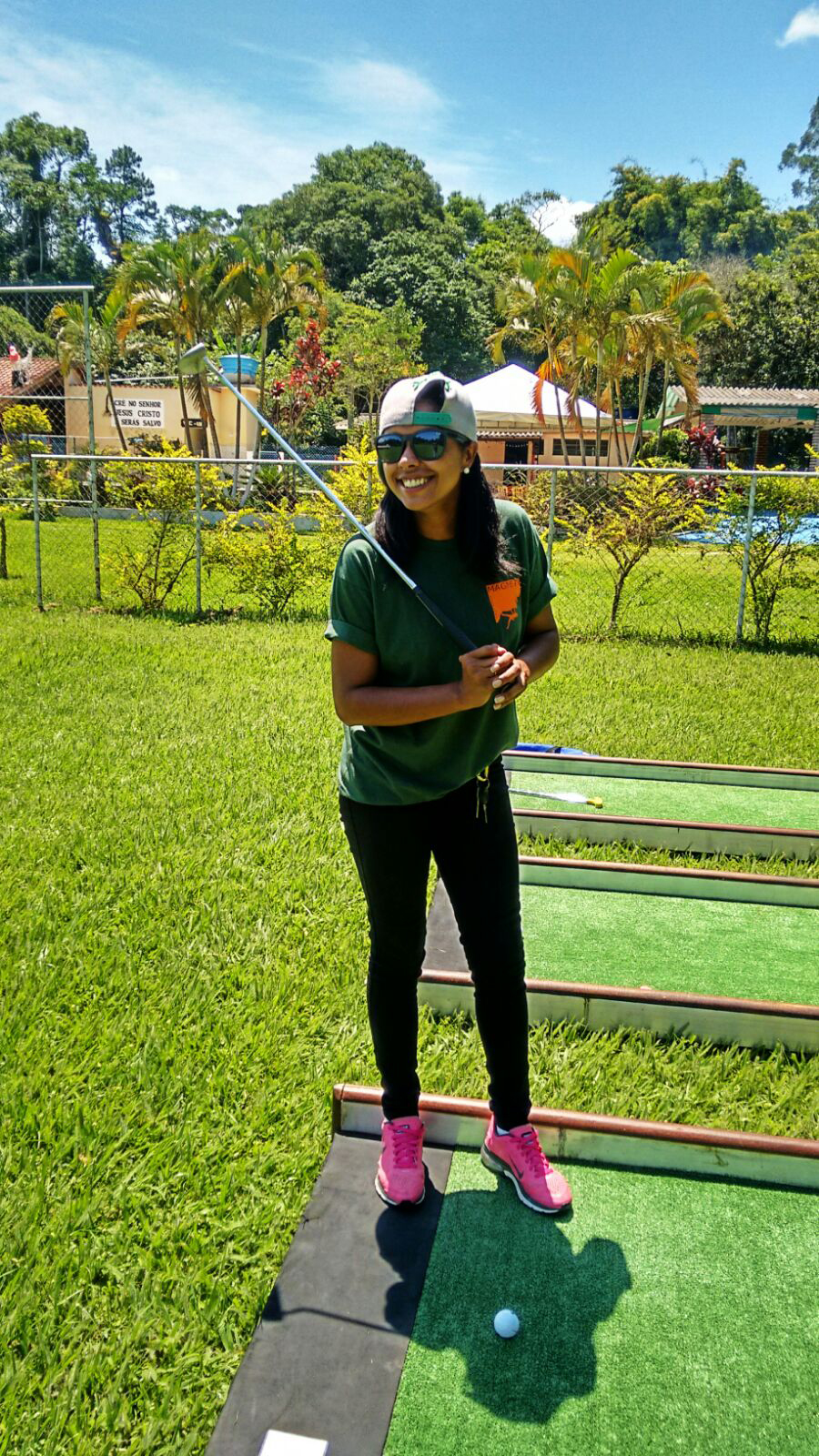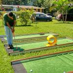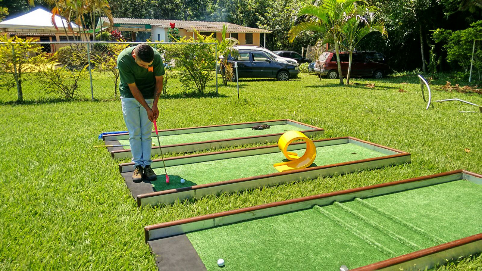 O objetivo da prova era passar pelas três pistas do circuito com o menor número de tacadas. O Minigolfe é um brinquedo ideal para todas as faixas etárias reunidos em momentos de pura descontração.   Os módulos possuem extensão de 3,20m por uma largura de 1 metro sendo que cada um tem sua particularidade de obstáculos. Uma pista tem um piso plano, a próxima com uma parte da superfície ondulada e o terceiro desafia os jogadores com um Looping.