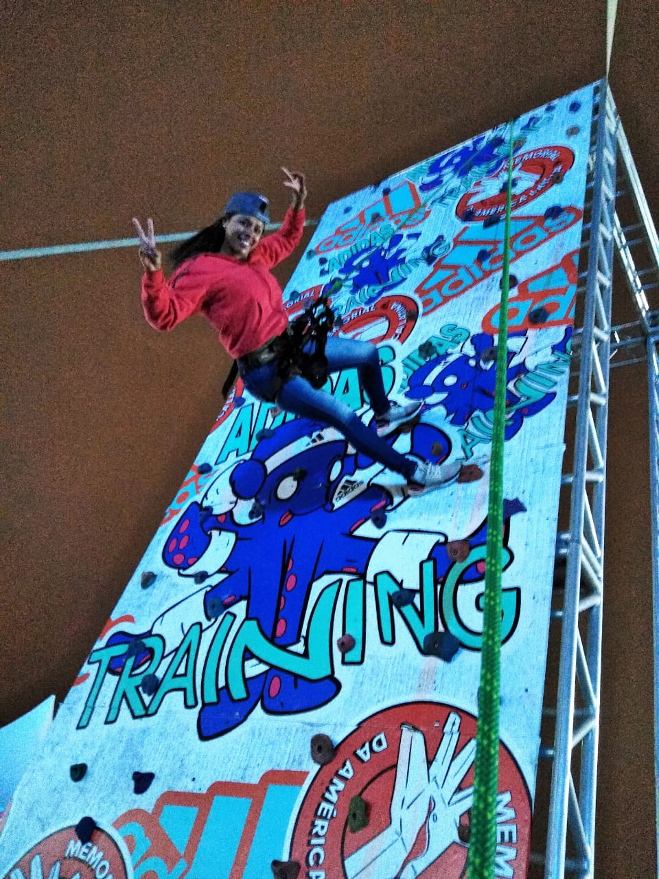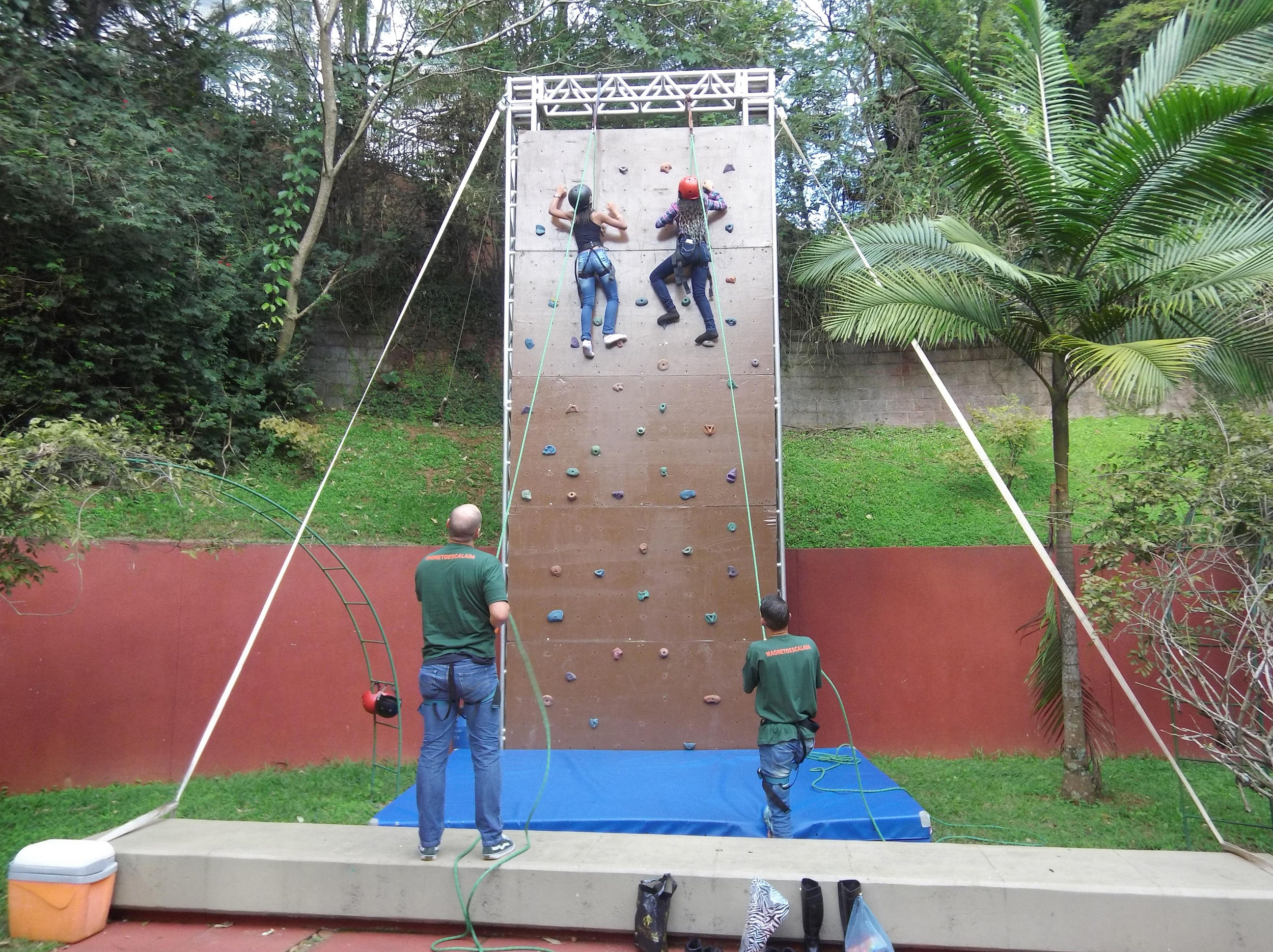 Os participantes sobem seguramente pela parede de escalada, se locomovendo na vertical pegando e pisando em agarras coloridas com formas ergonômicas, sempre usando materiais de segurança como sinto de seguranca, capacete e corda. Um técnico experiente cuida da segurança através de um freio semi-automático. Todos os materiais estão testados e aprovados pelos órgãos internacionais responsáveis.