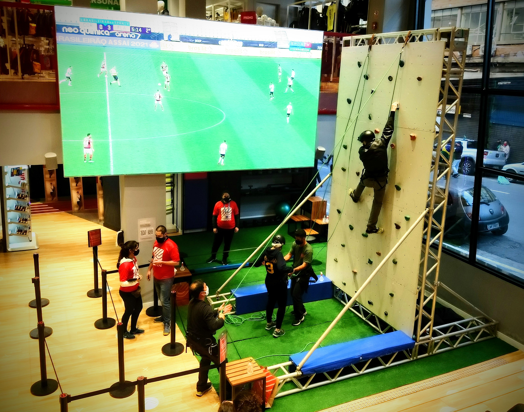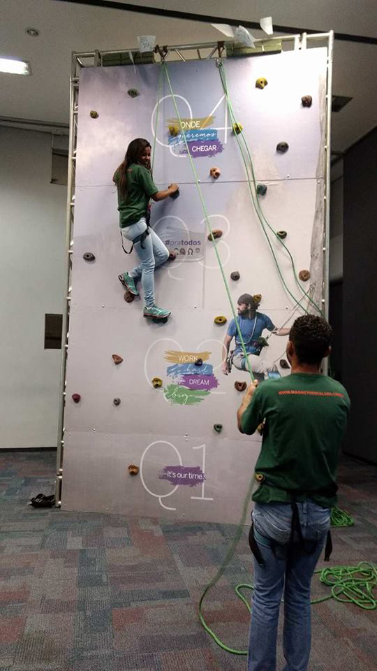 Fora de representar uma diversão radical temporária as Paredes de Escalada formam ótimos outdoors com muito espaço na superfície para mostrar o nome da sua empresa ou produto.