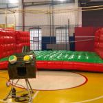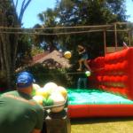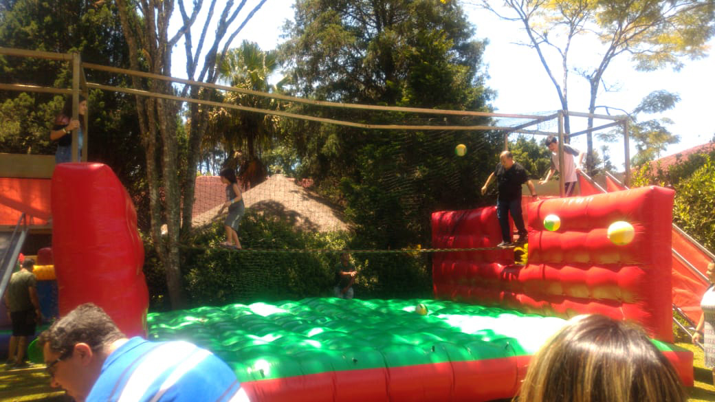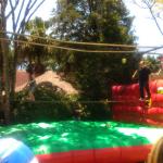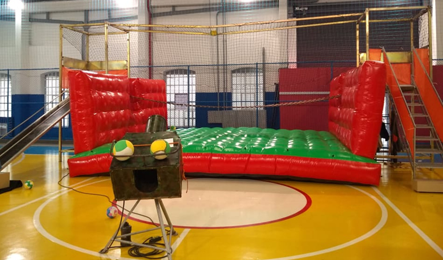 É uma ponte suspensa com 1,90m altura, por duas torres em ferro, a uma distância de 6m uma da outra. Para garantir a Aventura tem um canhão atirando bolas em EVA durante a travessia. Abaixo um grande colchão inflável para amortecer caso que o participante cai da ponte. Tem que ter equilíbrio, coragem e esperteza para conseguir chegar ao outro lado. Uma grande atração e brincadeira, ideal para crianças de 6 a 12 anos.